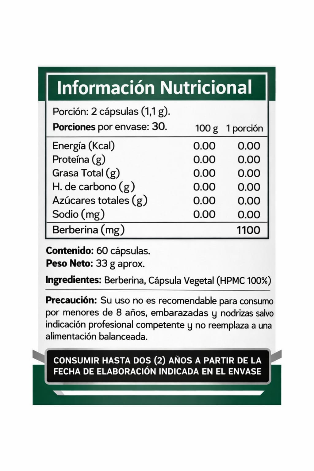 550 mg de berberina por cápsula