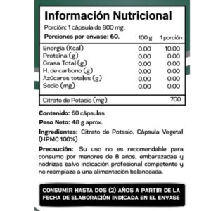 Ayuda al equilibrio ácido-base, función muscular y prevención de cálculos renales.