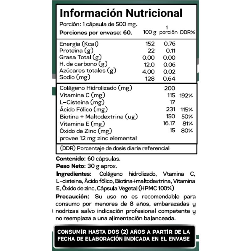 Contribuye a piel luminosa, cabello y uñas fuertes gracias a vitaminas y antioxidantes.