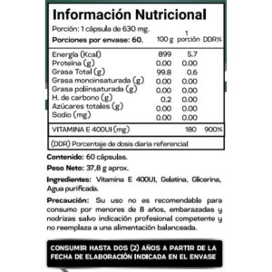 Protege contra el estrés oxidativo, mejora salud de piel, cabello y sistema cardiovascular.